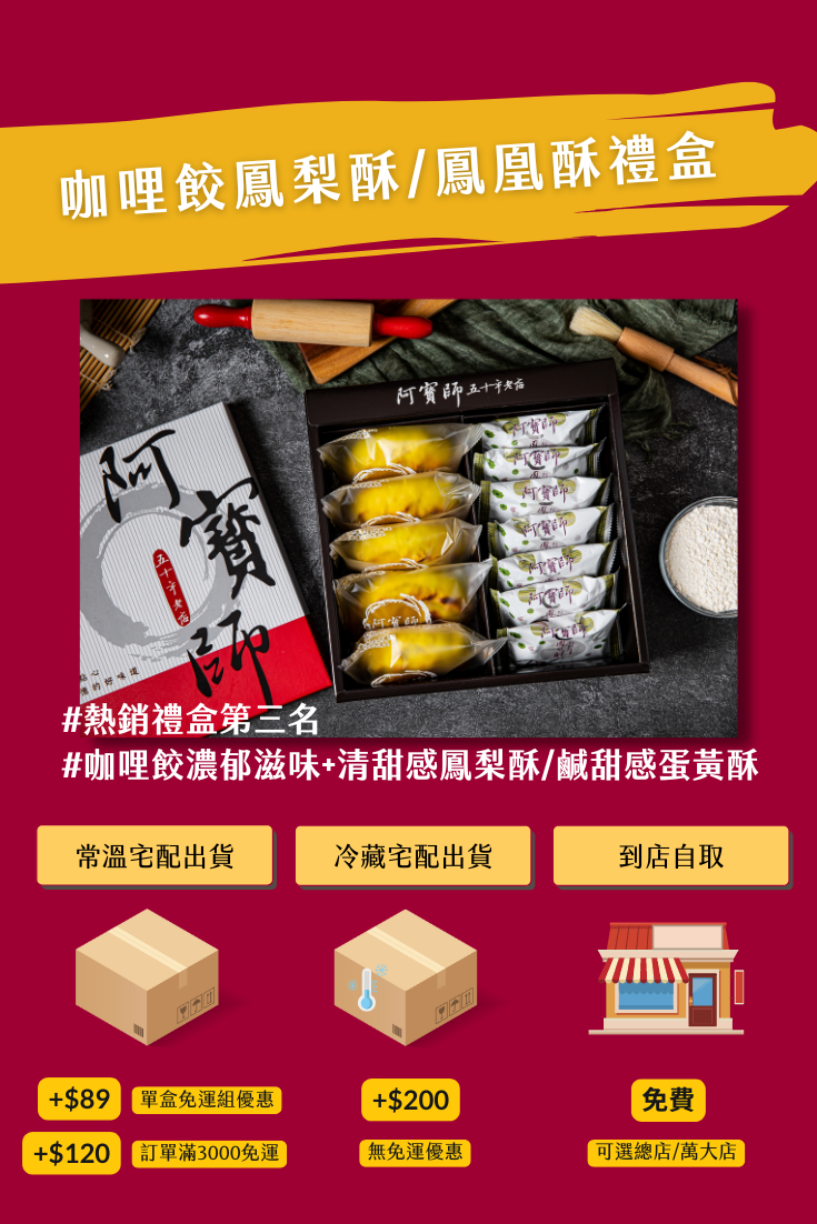 *【免運組】讓單次購買一盒嘗鮮或送禮的客人能夠節省運費,價格內含$99元常溫運費,剩下運費差額由阿寶師補貼。若您單次購買一盒以上,請您選擇一般組合運費外加較為划算。