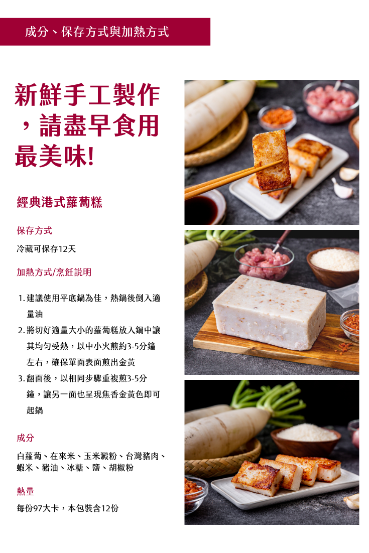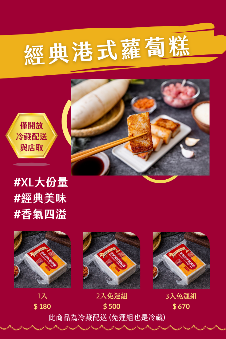 真空包裝(1100G)。經典港式蘿蔔糕。冷藏保存12天。
